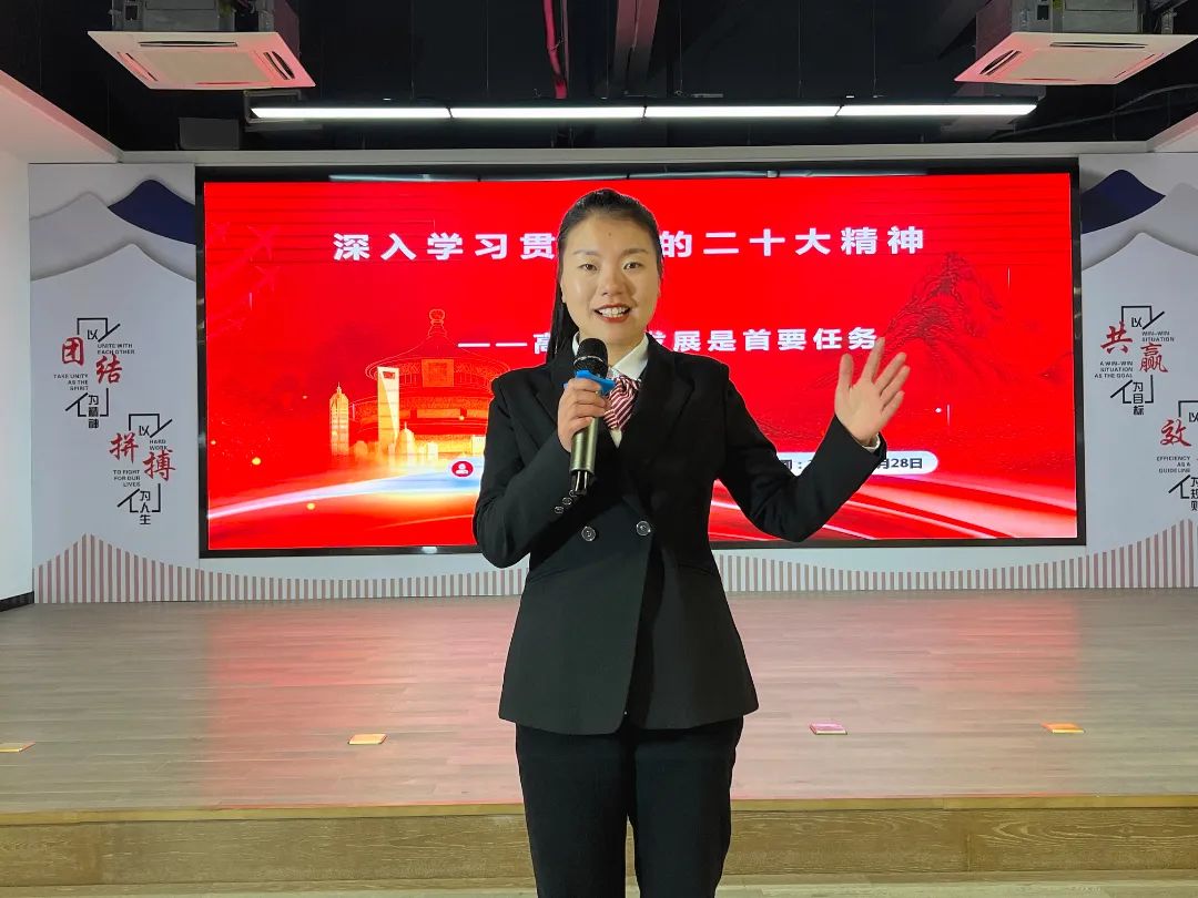 This activity was preached by Qiu Liping and Zhou Rui, members of the youth propaganda group of "8090 00" Group company. Qiu Liping, with the title of "Actively Promoting the high-quality development of enterprises and Striving to create the benchmark of Advanced equipment Manufacturing Industry - The Party's 20 Spirit Propaganda", comprehensively and vividly expounded the concept, approach and modernization achievements of Chinese society under the high-quality development through text and video forms, and combined with the company's actual situation, It shows the firm confidence and courage of the company 踔厲 to work hard and move forward bravely. With the title of "In-depth learning of the twenty major Spirits to Take the Road to the New Era", Zhou Rui started from the perspective of implementing innovation-driven development, talent strengthening strategy and promoting high-quality development, combined with the actual situation of the company and their own experience and understanding, and advocated that young people should remember the "road to come", take the "road at the foot", and firmly "the road to the future". Contribute hot youth and wisdom to the development of the company.